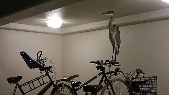 「これは駐輪場にトリがいてビビった時の写真」そんな投稿がツイッターで注目を集めている。