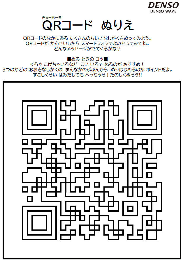 公開したその塗り絵がマニアック過ぎると話題なのだ。デンソーが配布しているのは、QRコード塗り絵。真っ白なQRコードを塗っていくとQRコードが完成していくというもの。