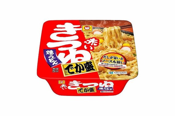 同商品は全国のコンビニエンスストア、量販店などで販売される。「赤いきつね焼うどんでか盛」は、麺重量120グラムと食べごたえのあるうどんに、かつお節と昆布の和風だしを利かせた「赤いきつねうどん」をイメージしたソースが合うという。