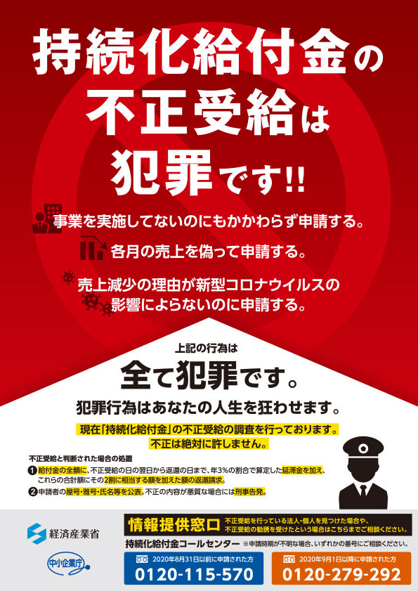新型コロナ対策で個人事業主らに支給される持続化給付金を巡り、警察の摘発などを恐れる不正受給者から返還希望が殺到し、国が返金手続きの一部を7月から停止している。コールセンターには給付金を返還したいとの申し出が増えているという。