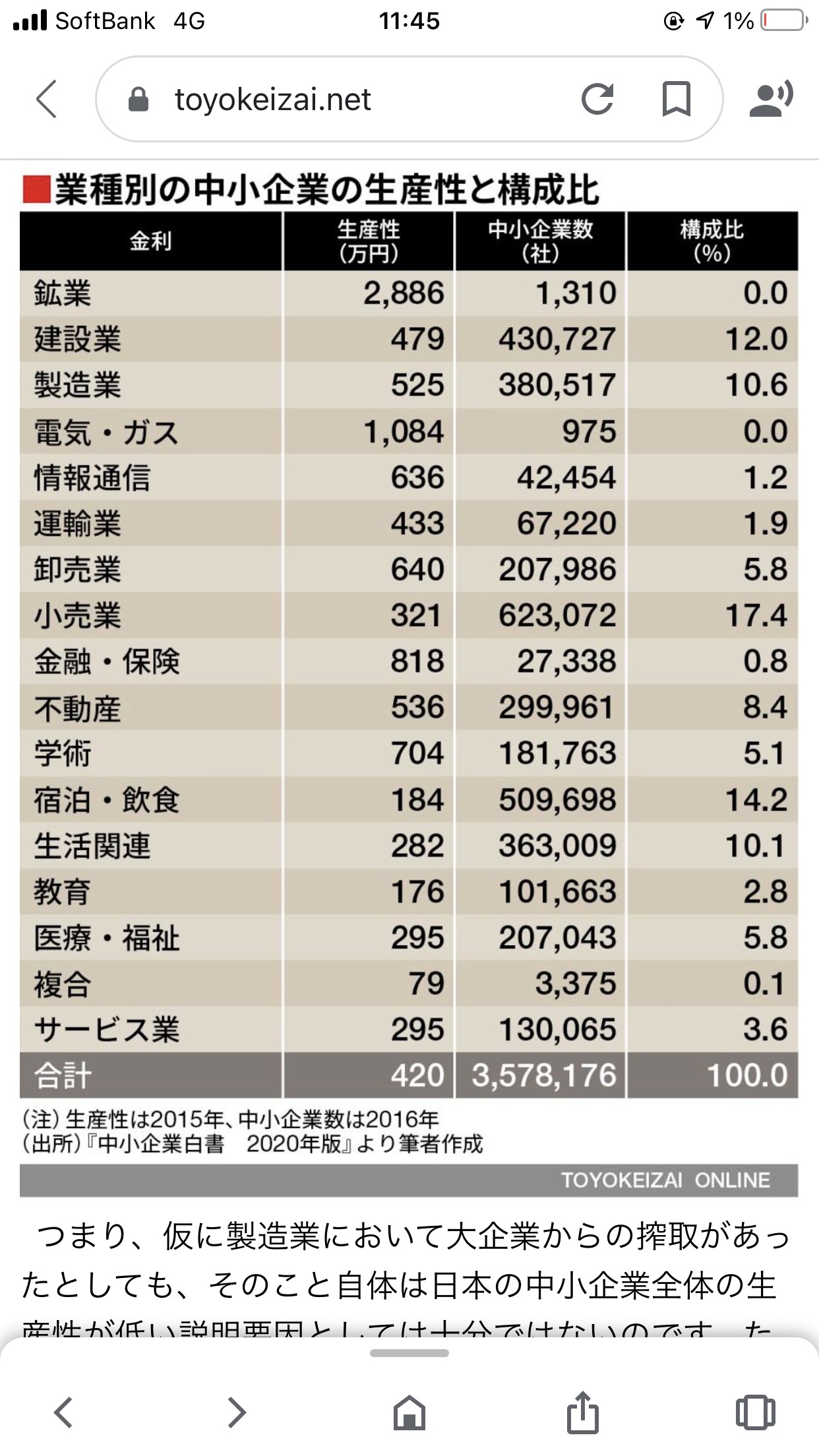 小売業 生産性321万円 企業数に占める割合17.4%