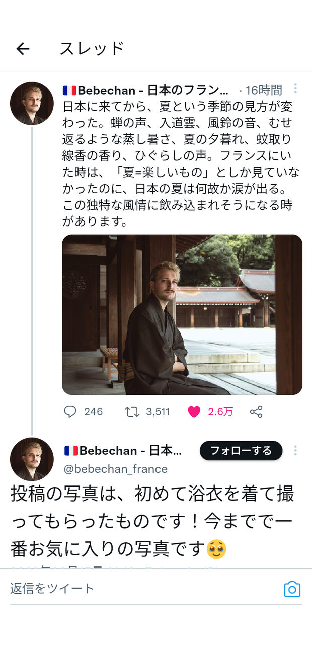 日本に来てから、夏という季節の見方が変わった。蝉の声、入道雲、風鈴の音、むせ返るような蒸し暑さ、夏の夕暮れ、蚊取り線香の香り、ひぐらしの声。フランスにいた時は、「夏=楽しいもの」としか見ていなかったのに、日本の夏は何故か涙が出る。この独特な風情に飲み込まれそうになる時があります。