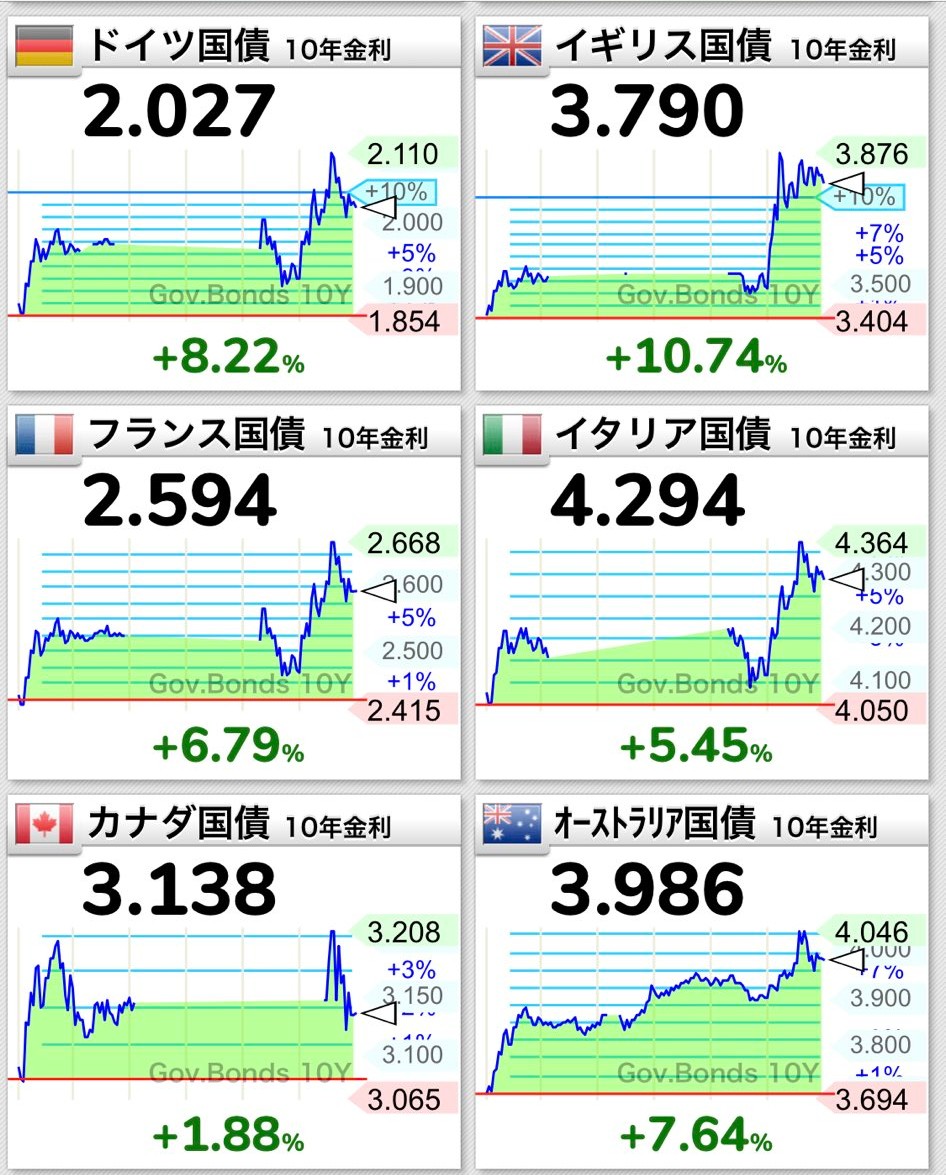 欧州各国も引きずられて金利が上がり世界中株価下落