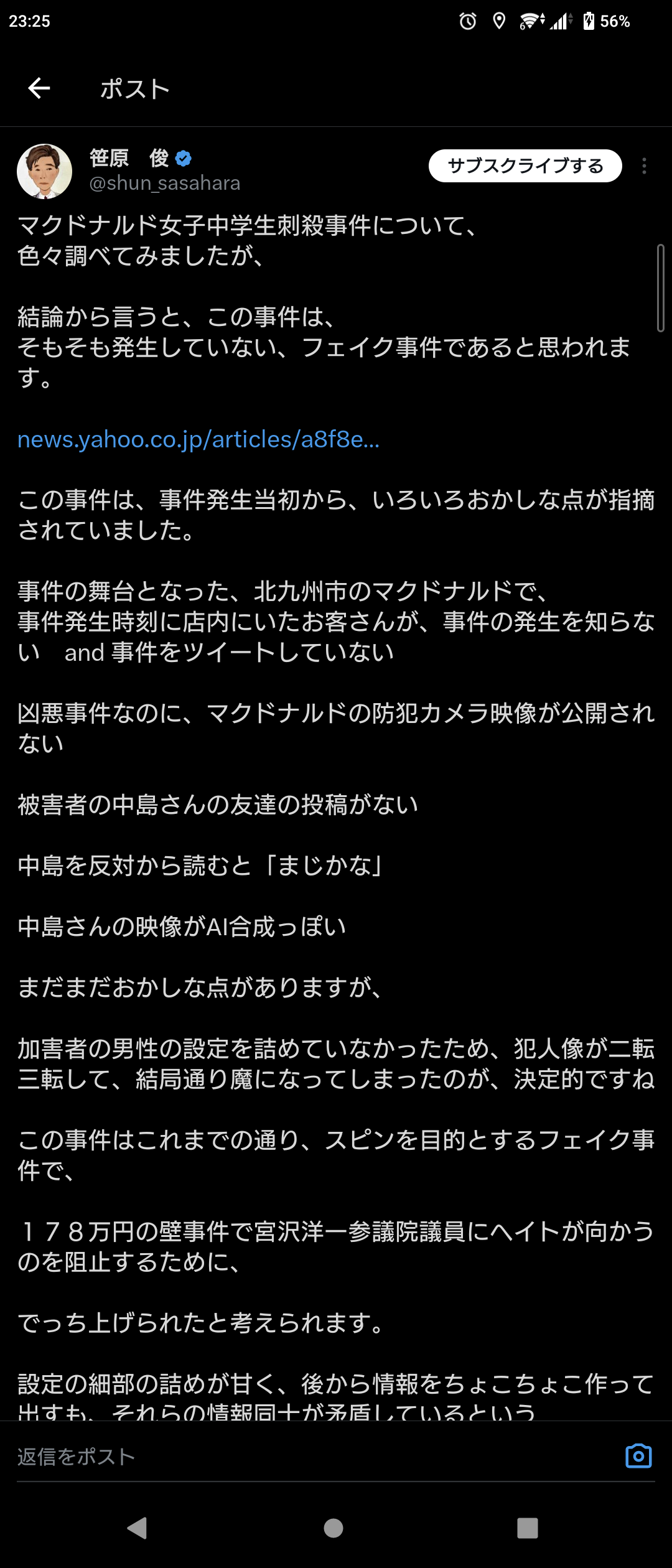 そもそも発生していない、フェイク事件であると思われます。https://t.co/swpT2mLLzFこの事件は、事件発生当初から、いろいろおかしな点が指摘されていました。…