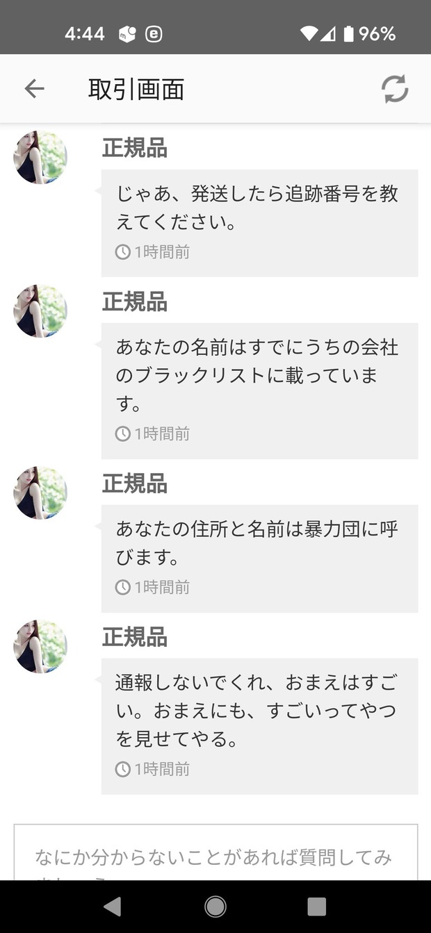 出品者にそのことを問い詰め返品すると伝えるとカタコトの日本語で家に暴力団を呼ぶぞと脅迫されたわ