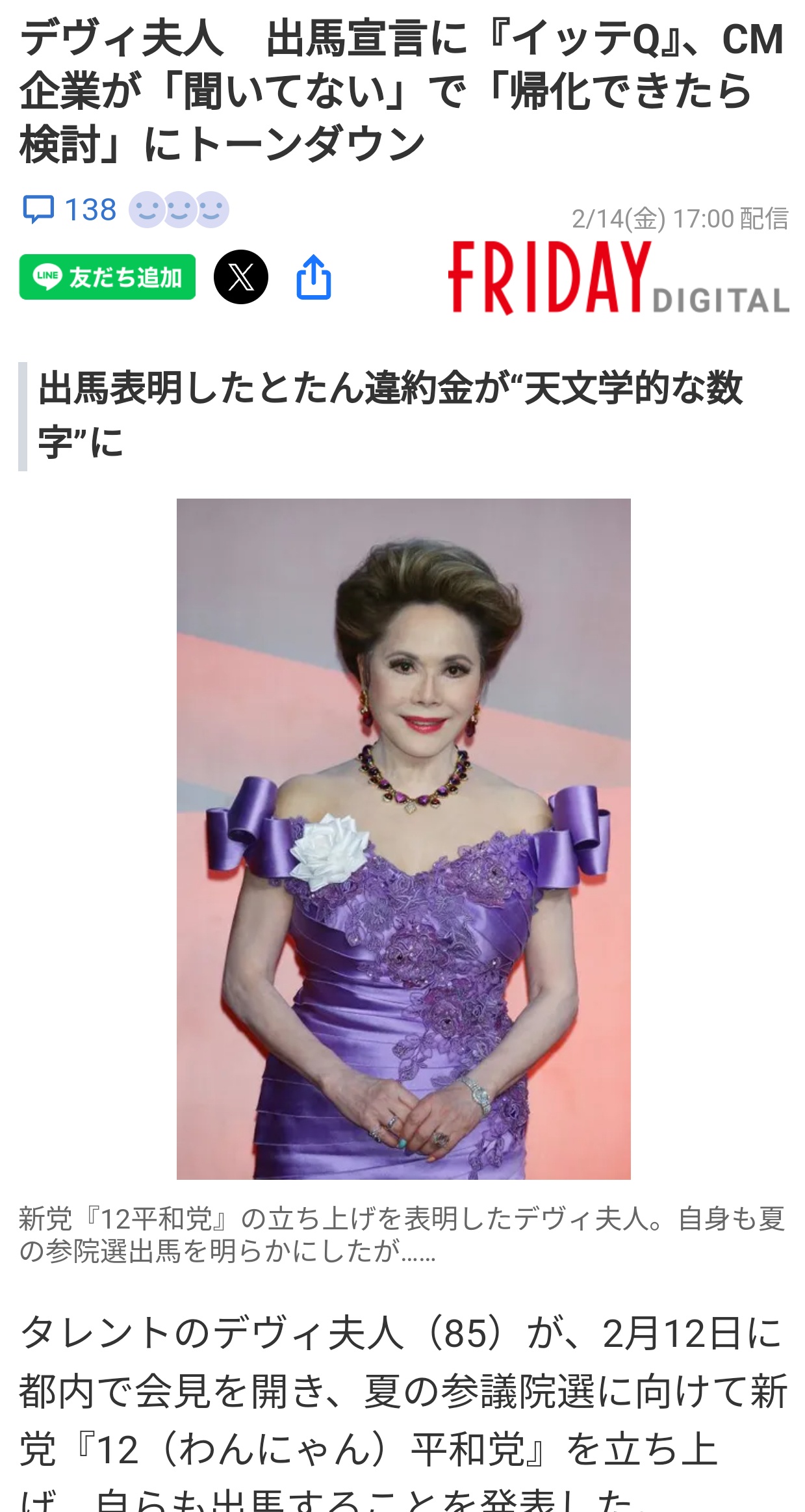 デヴィ夫人 出馬宣言に『イッテQ』、CM企業が「聞いてない」で「帰化できたら検討」にトーンダウン | FRIDAYデジタル