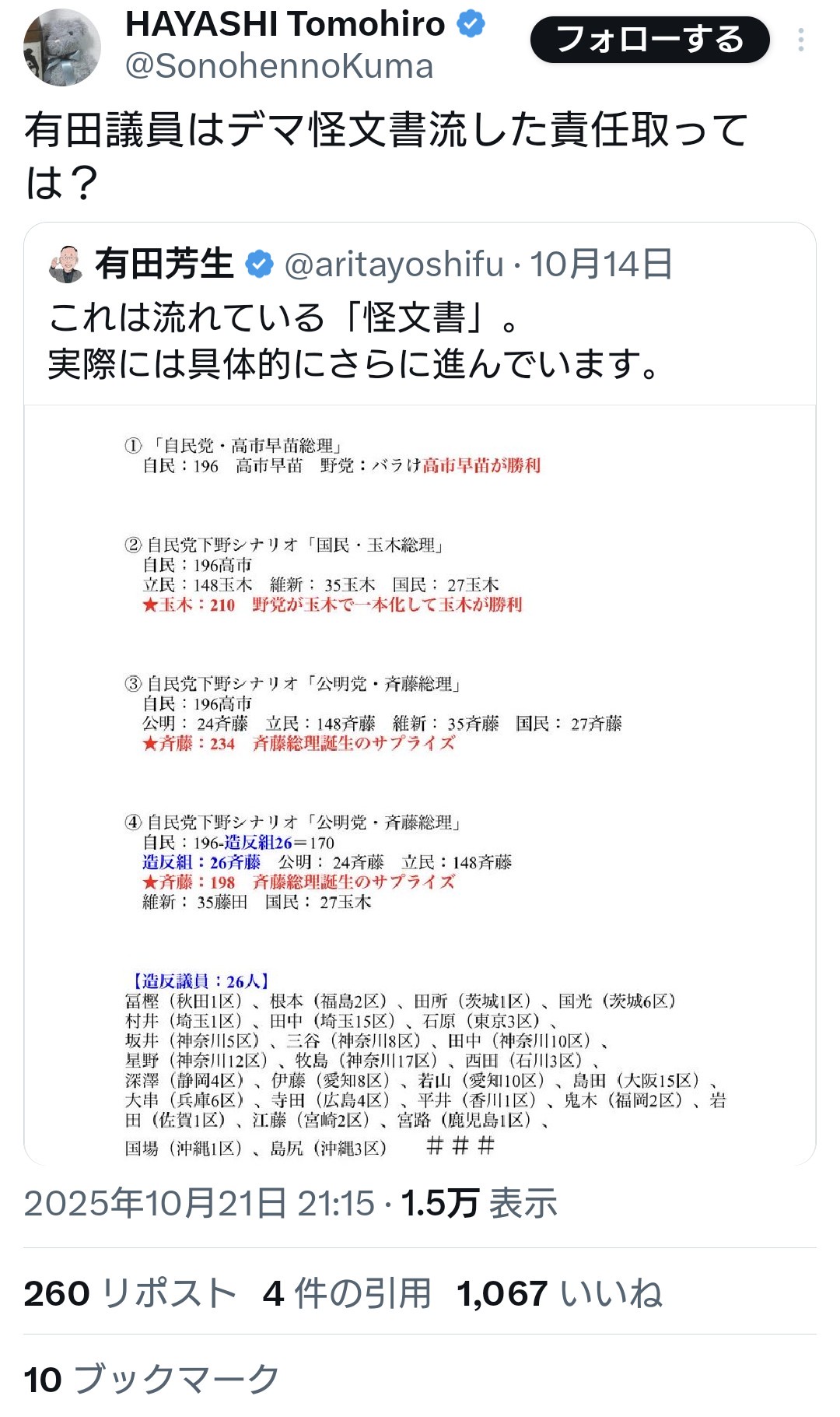 有田議員はデマ怪文書流した責任取っては? https://t.co/frxIqj4nUC