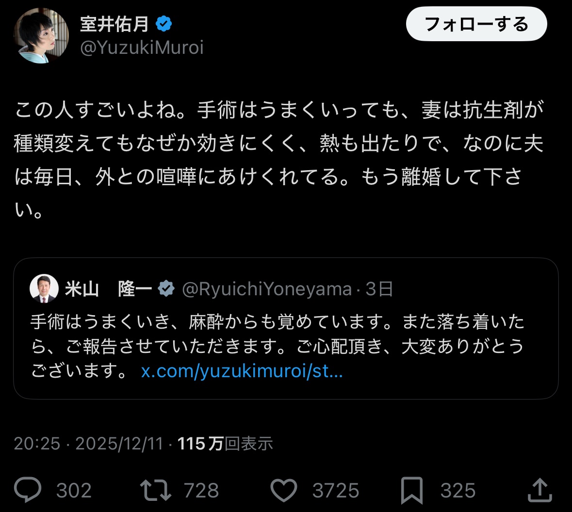 — 室井佑月 (@YuzukiMuroi) December 11, 2025