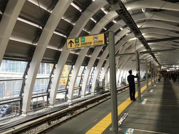 ホームを覆う、無数の白い柱。特徴的なデザインだが、さっそく駅舎を利用した人には「ある物」に見えたようだ。