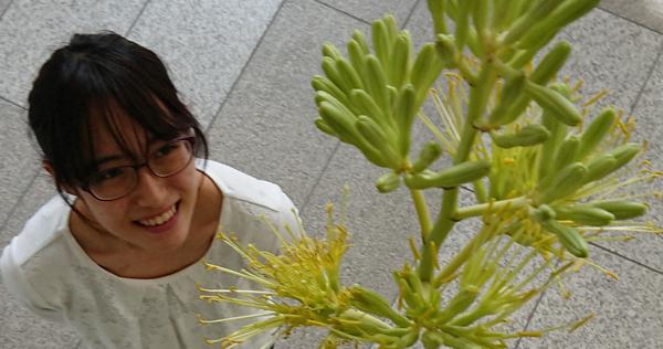 60~100年に一度しか開花しないとされ「奇跡の植物」といわれるアガベの花が那須塩原市あたご町の市西那須野支所エントランスに展示され、話題になっている。