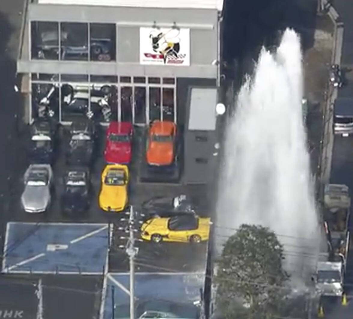 横浜市旭区のコルベット専門店のあたり、水が噴出して凄い事に💦 pic.twitter.com/TvGjuJ8g1n