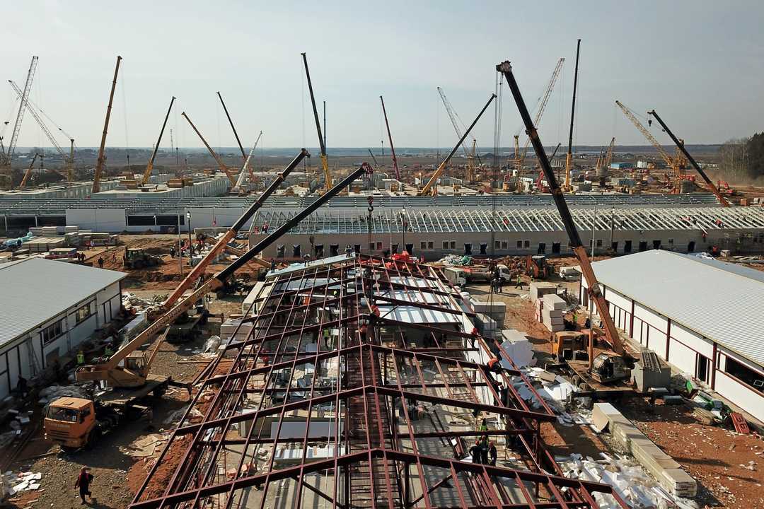 報道によると、モスクワから50キロメートルの場所に、数百人の労働者が500床規模の病院を建設している。